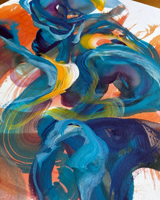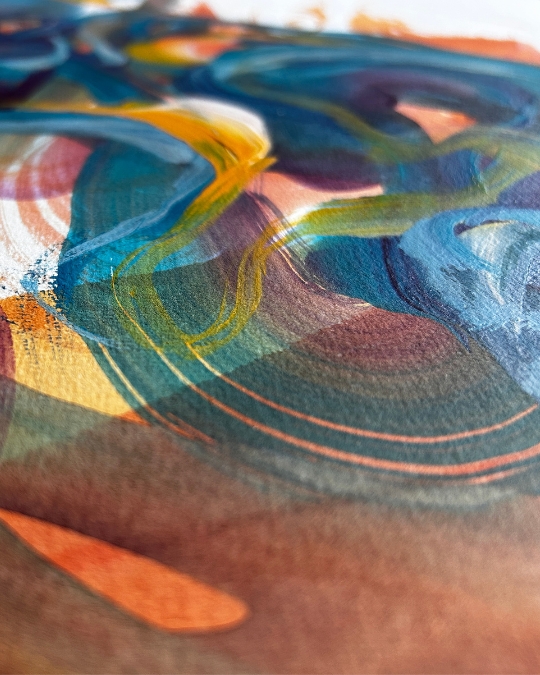 Aprenderás a usar movimientos orgánicos y colores vibrantes para crear composiciones abstractas que capturan emociones profundas y dinámicas.